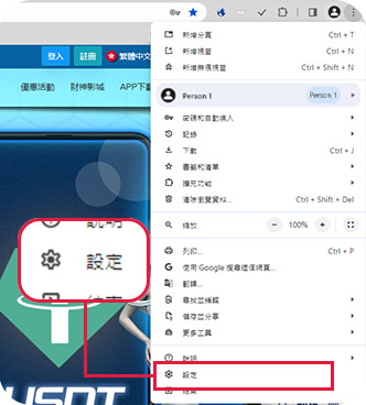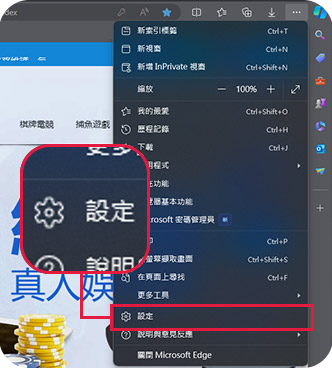 1. 開啟EDGE遊覽器,在最上方選擇[三顆點]圖示, 然後選取[設定]。